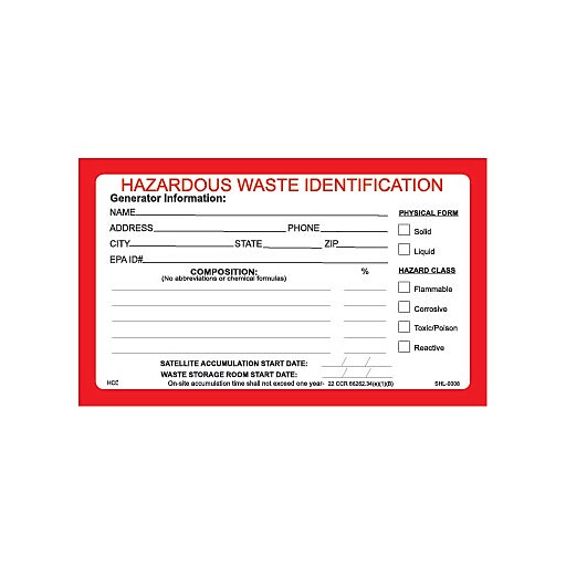 HCL Hazardous Waste Identification, Satellite Accumulation Label, 3" x 5" (SHL0008003525) | Staples